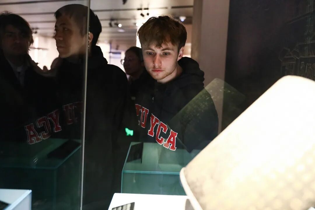 11月17日下午,师生一行来到杭州市临安区的吴越文化博物馆。吴越文化博物馆呈现了五代十国时期吴越国的历史与文化,向同学们讲述跨越千年的种种故事。同学们驻足于馆内的秘色瓷展区,温润如玉的青绿色泽,彰显着瓷器品类的卓越。烧制时需要使用特殊的瓷质匣钵,并经过高温淬炼,方能呈现独特典雅的花色与造型;瓷器多为花口、兽足,尽显江南水乡的灵动与细腻。
