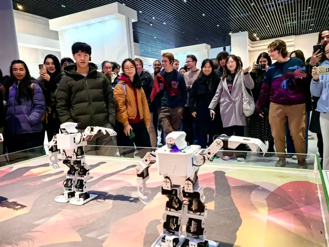 第一组同学们首先探访了位于杭州萧山的机器人小镇——国内首个集研发孵化、工程服务、展示体验与科普旅游于一体的机器人全产业链创新聚集区。在这里,同学们系统了解到机器人的类别,工业机器人广泛应用于医疗设备制造、焊接与紧急救援等领域——例如,铸正机器人专注于脊柱外科与骨科手术医疗设备的制造,而中信重工则致力于研发特种机器人;服务机器人则涵盖智能宠物、书法绘画、舞蹈机器人等,为生活注入科技乐趣。同学们不仅与舞蹈机器人互动共舞,还观摩了分拣机器人高速精准的分拣操作,对机器人在提升效率与丰富生活体验方面的潜力赞叹不已。