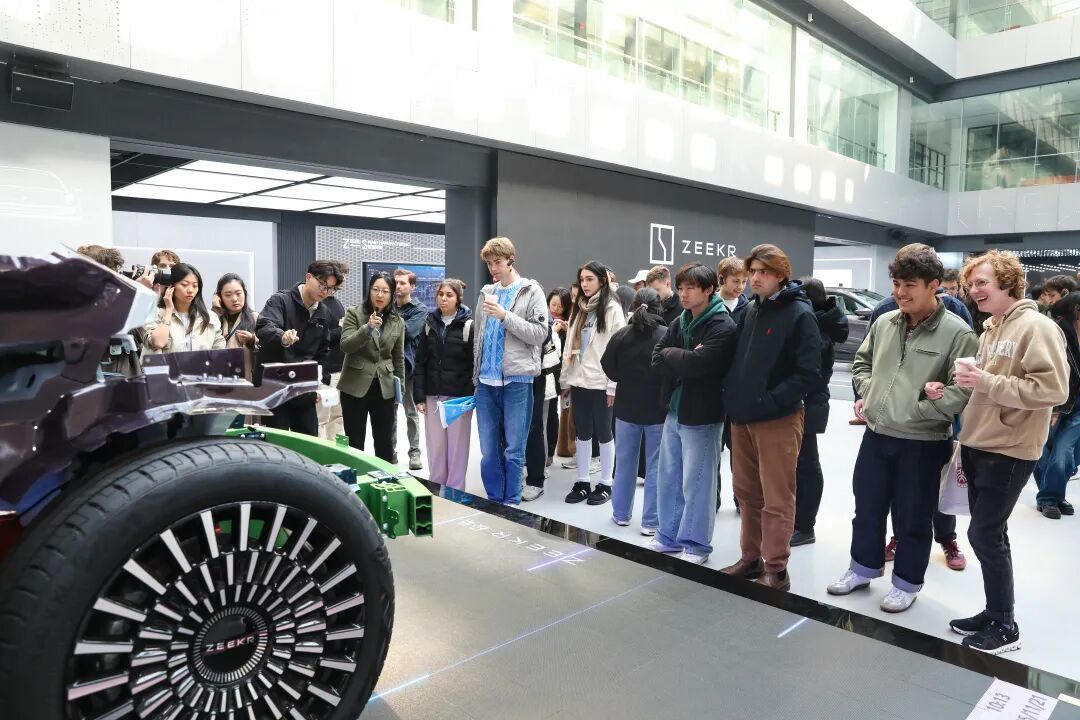 11月21日上午,同学们参访了国内新能源汽车领域的代表——极氪汽车,深入了解了智能电动汽车的制造工艺与技术创新,亲身感受到“中国智造”在工业升级中的实践成果。在展厅中,大家近距离观摩极氪车型的高强度车身结构与集成化底盘设计,并通过碰撞试验车的残骸展示,直观认识到其在安全设计与电力管理方面的系统性保障,对极氪在被动安全与车身刚性方面的卓越表现留下了深刻印象。