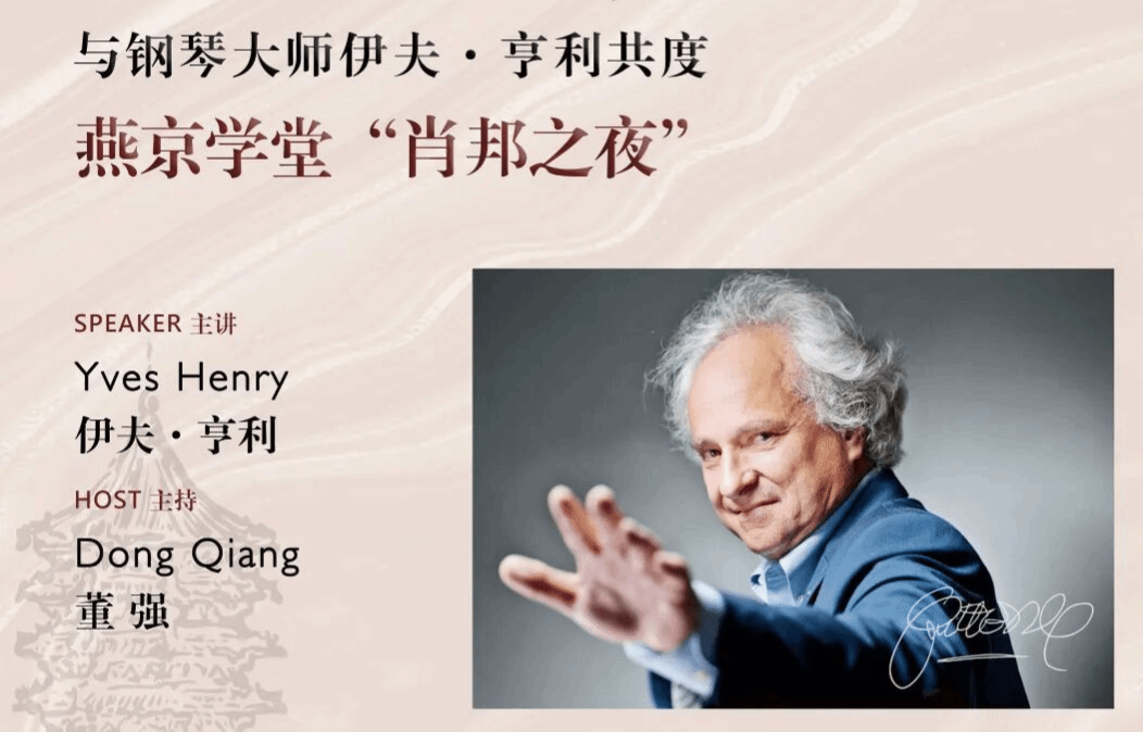 北京大学燕京学堂荣幸地邀请到全球著名钢琴家、教育家,法国文学与艺术军官勋章获得者,法国巴黎国立高等音乐学院教授,法国诺昂肖邦音乐节主席,波兰国际肖邦协会联合会理事会成员伊夫·亨利于2025年11月1日来到燕园,以演奏与现场讲解相结合的方式,将我们引入肖邦音乐的迷人世界,并与在座师生互动。伊夫·亨利先生将首次启用燕京学堂近期获...